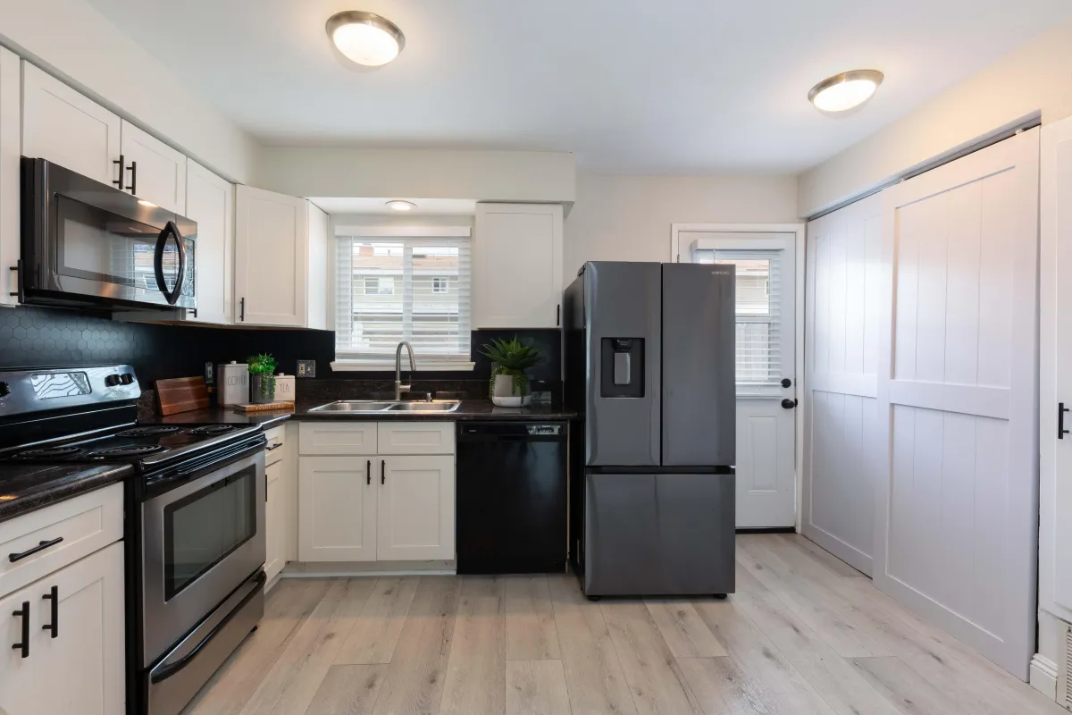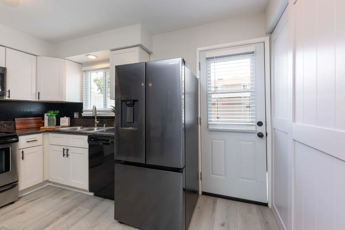 Beach-resort living meets modern comfort in this beautifully updated 2-story townhome nestled in the highly sought-after area in south Huntington Beach. As you enter, you'll feel at home with the warm, inviting floor plan featuring wide-plank luxury vinyl plank flooring, recessed lighting, and a charming painted brick fireplace that adds character to the spacious living room. The dining area flows seamlessly into a tastefully remodeled kitchen, where you'll find granite countertops, crisp white shaker cabinets, and stainless steel appliances. The wall between kitchen and hall to laundry was removed to open up the space which has increased the kitchen space. A sliding barn door conceals the laundry area, and there's a convenient large storage nook tucked beneath the stairs—perfect for keeping things neat and organized. A remodeled powder room, with vanity and cabinet. The private enclosed patio complete the main level, ideal for entertaining and relaxing outdoors. Upstairs, you’ll find two generously sized bedrooms with plush carpeting, in the primary bedroom you’ll find 2 closets with mirrored doors, and plenty of natural light. The full bathroom has been thoughtfully upgraded with a granite countertop vanity, modern lighting, and a designer glass shower door with tub enclosure and ample shelving. Residents of this community enjoy access to resort-style amenities including a large greenbelts, sparkling pool and spa, shaded playground, outdoor fitness equipment, picnic areas, and a basketball court. The home includes two assigned parking spaces—one covered with overhead storage cabinets and one permit parking pass for guests or a second vehicle. Ideally located just minutes from the sand, parks, restaurants, and schools. This townhome offers the perfect blend of beach-close lifestyle, modern upgrades, and a community-focused environment.
